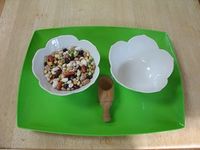 | Materials | 2 bowls dry rice or beans small scoop tray |
