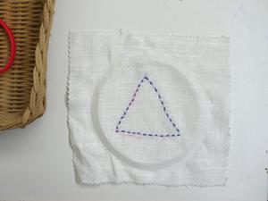 - Draw a shape on the fabric with the chalk. (Do this inside the hoop to be sure the shape will fit.)