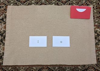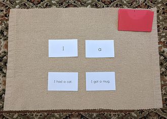 Carry the folder of word cards to a mat or table. Place the it in the upper right corner.