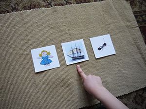 - Have 3 to 5 objects (or pictures) on a table or mat. The objects should have only 2 or 3 sounds in their names.