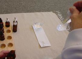5. Take the first bottle from the right side of the tray. Set it below the tray. Taste the liquid using the same procedure as before.
