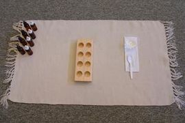 In this activity the child matches paired bottles of different flavored liquid. This helps the child refine their sense of taste.
