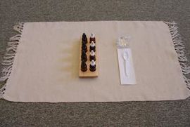 6. If it tastes the same as the liquid from the first bottle, place the pair in the upper left corner of the workspace. If it does not match, set it to the right of the tray and taste the liquid in the next bottle. Be sure to clean the spoon each time.